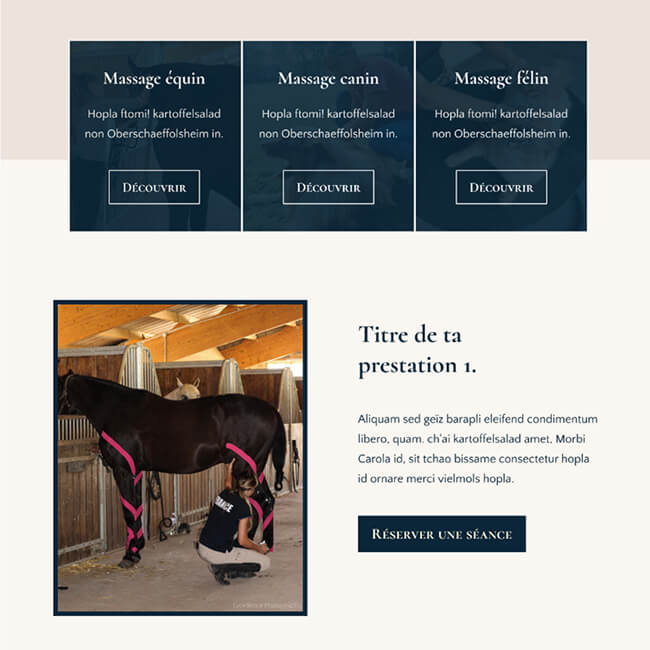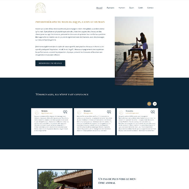 Je suis ravie du résultat final : un site clair, fluide, élégant et fonctionnel, qui met parfaitement en avant mes prestations de massage, aussi bien pour les humains que pour les animaux.